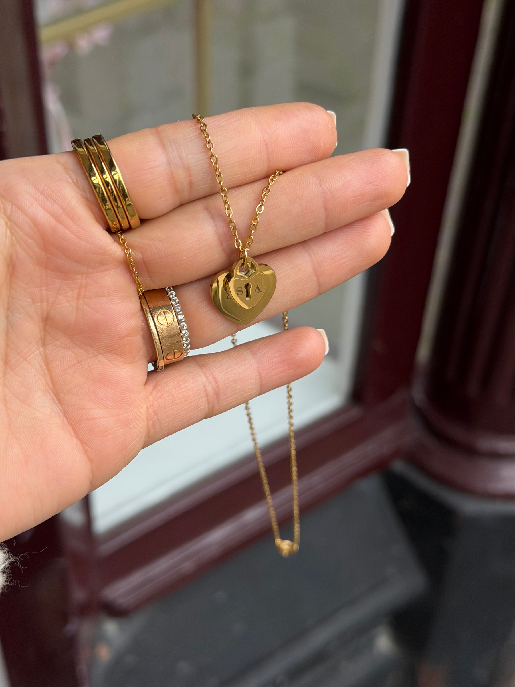 This delicate necklace features a heart-shaped pendant hidden beneath a key charm, where we carefully engrave two initials of your choice. A symbolic design that says: "You hold the key to my heart."