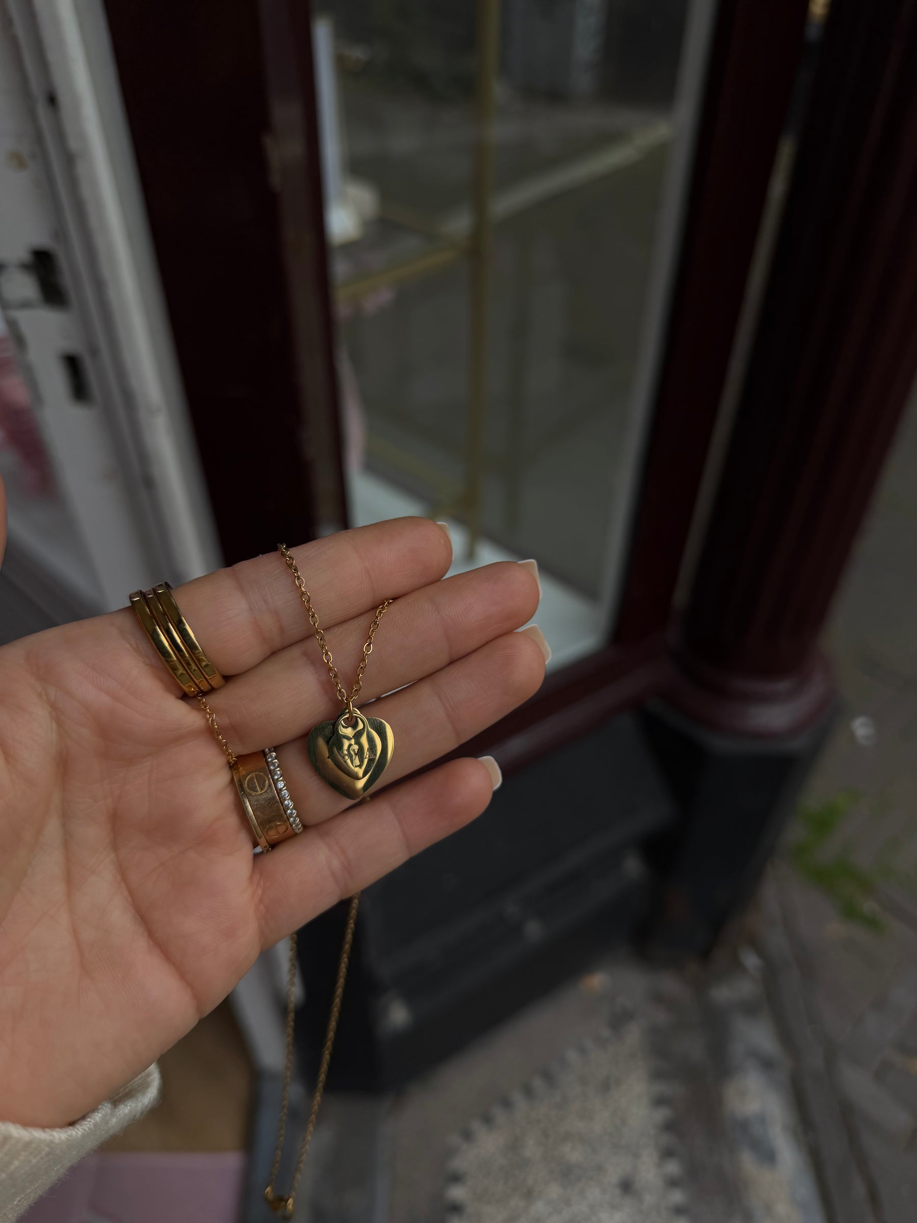 This delicate necklace features a heart-shaped pendant hidden beneath a key charm, where we carefully engrave two initials of your choice. A symbolic design that says: "You hold the key to my heart."