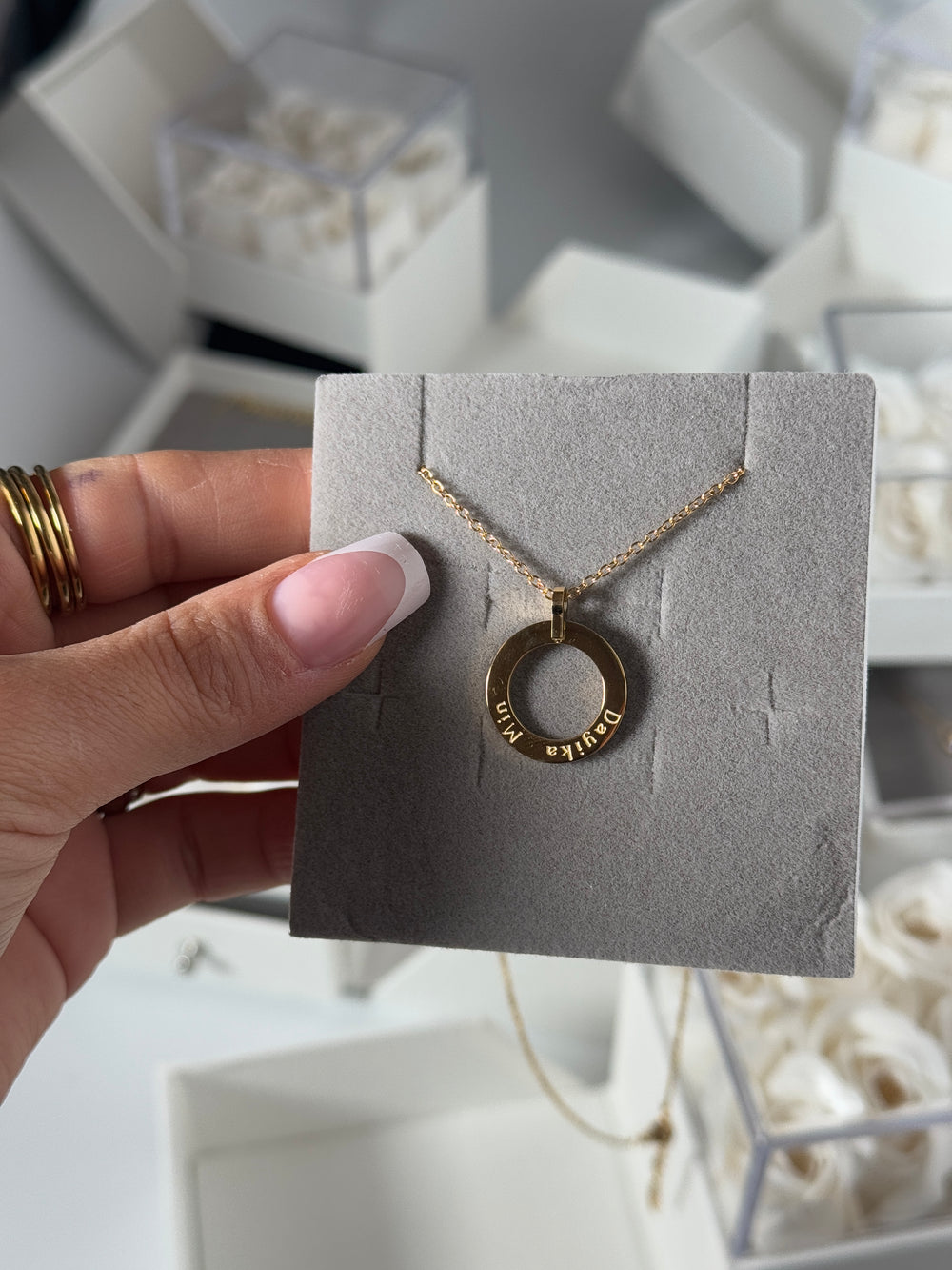 The round pendant is delicately engraved with the phrase "Dayika min" – which means "my mother" in Kurdish – adding an extra layer of love and meaning to this special gift.