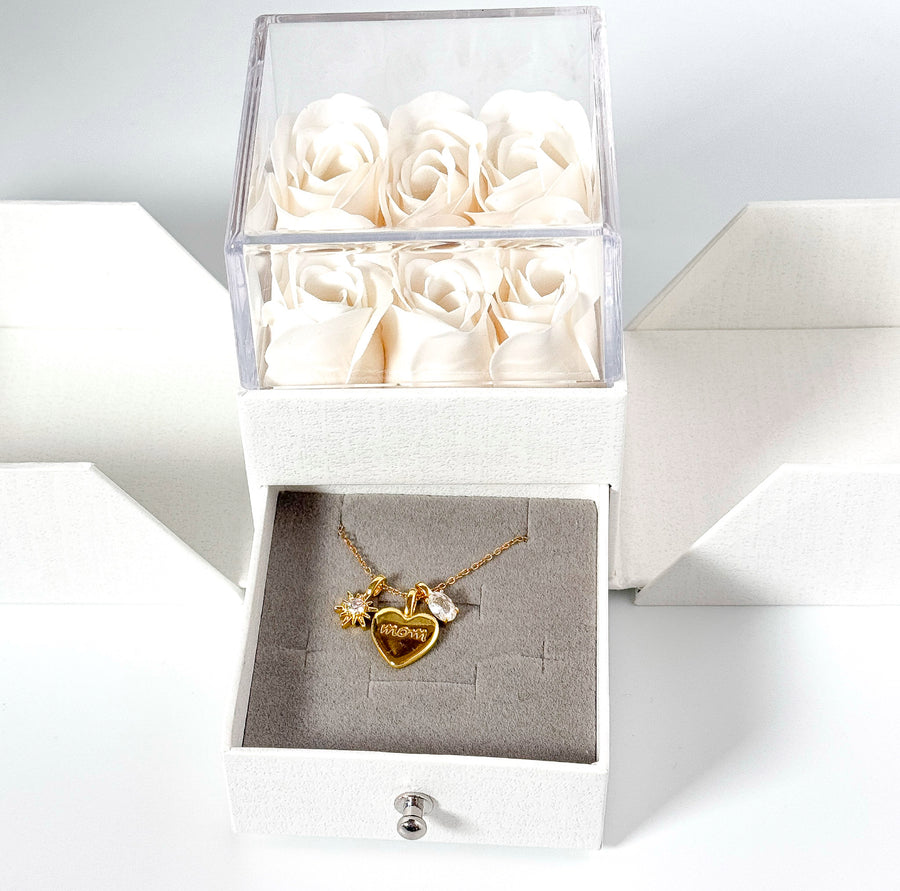 Even better: the necklace comes beautifully presented in our signature rose box, filled with elegant white roses and packaged with care in a matching gift bag—ready to give, no extra wrapping needed.