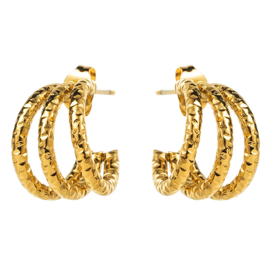 How beautiful are these three layer earrings in the color gold. The earrings are made of stainless steel material, this way they last longer! You can combine the earrings with the Gulan necklace to finish the look.